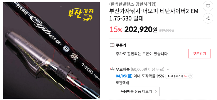 온라인으로 상품을 검색을 하면 많이 하는 편인데 실제로 온라인에서도 1.75대 찾는 것이 쉽지는 않습니다. 부산 가자 낚시에 검색을 해보니 몇개 나오는데요 약간 마니아 분들만 찾는 듯 해 보이기도 한 제품입니다. 일단 낚시터에서 사용을 해 보시면 생각이 달라질 수 있다고 생각이 듭니다.
