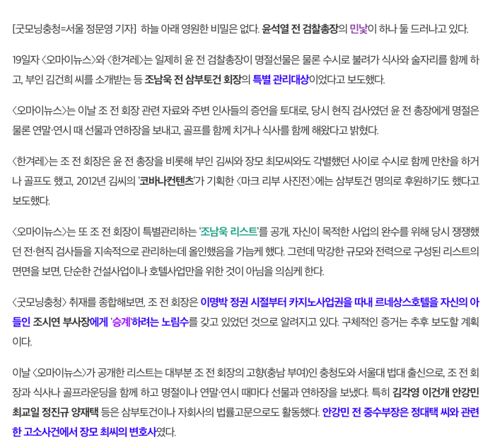 - 최은순 장모는 2011년 검 참조사에서 삼부토건 조남욱 회장이 윤총장 소개했다고 진술함 (어머니 이야기 딸 이야기가 다름)