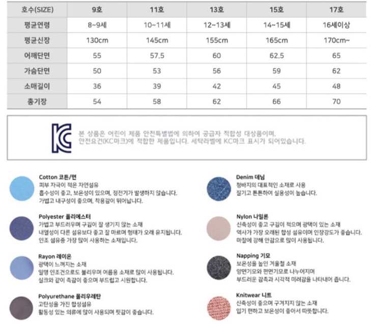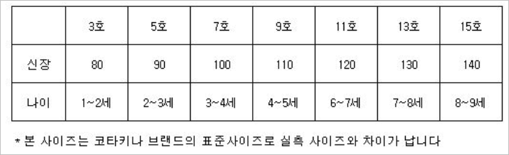 이상 아동복 사이즈 조견표 포스팅을 마칩니다.