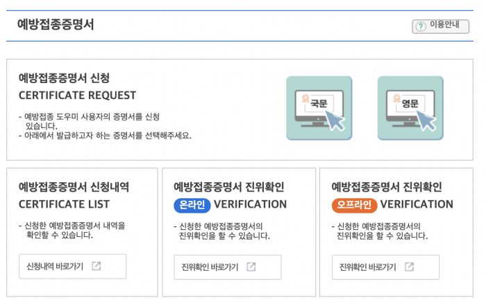 코로나 접종 증명서는 크게 3가지로 구분이 됩니다.