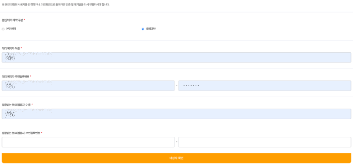 대리예약을 할 경우는 질병관리청 예약 홈페이지 https://ncvr2.kdca.go.kr/ 접속을 한 다음 본인/대리 예약 구분 -> 대리예약으로 진행을 하면 됩니다.