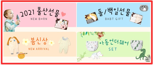 팁을 드리면 화살표표 표기한 부분은 봄여름 / 가을겨울로 보통 출산이 이루어지므로 시즌에 맞게 출산준비물과 돌백일 선물 군으로 나누어져 있어서 고민을 덜어주는 형태로 구성이 되어 있어 편리합니다.
