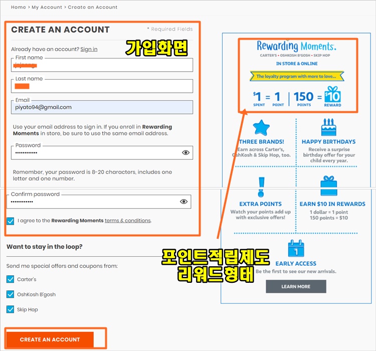 카터스 미국 온라인 쇼핑몰 가입하는 방법입니다. 어렵지 않아서 너무 쉽습니다.