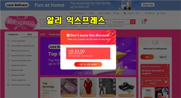 2위 알리프레스 또는 알리 익스프레스, 위시(wish), 중국 온라인 쇼핑몰. 가입하는 곳은 aliexpress.com 입니다.